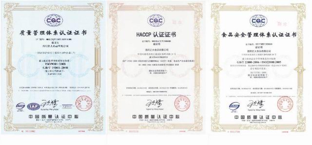 2013年8月19日,公司正式獲得食品安全管理、HACCP管理體系兩個(gè)管理體系的認(rèn)證證書(shū)。公司自2012年11月18日開(kāi)業(yè)以來(lái),在全體干部員工齊心協(xié)力基礎(chǔ)上,已成功通過(guò)了質(zhì)量管理體系、食品安全管理體系、HACCP管理體系三個(gè)管理體系認(rèn)證,為產(chǎn)品在全國(guó)各地市場(chǎng)準(zhǔn)入、出口備案及管理水平提升奠定了基礎(chǔ)。